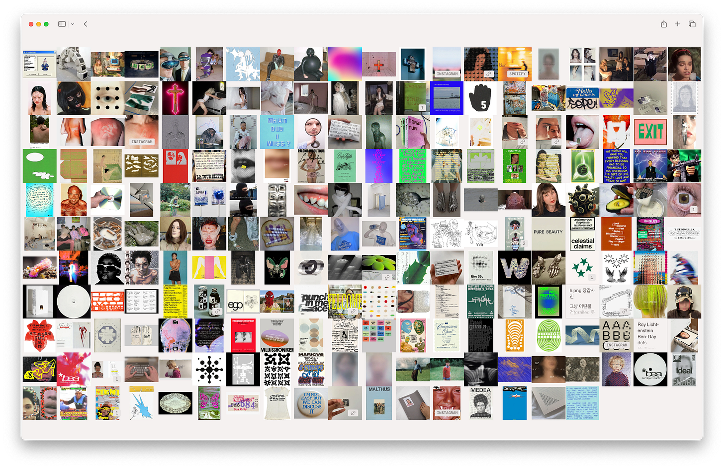 Returning to the origin of this journey. The algorithm’s primary task is not to cluster images from a single Are.na channel, but to organize a selected group of 200 images taken from various relevant channels. The resulting image pool is therefore inherently less cohesive than in the previous experiments.