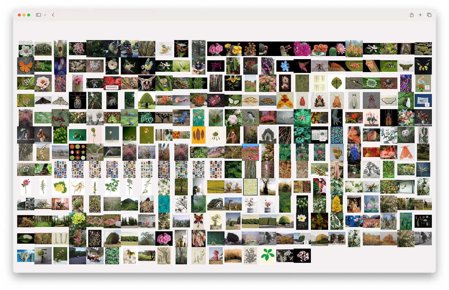 To test the clustering, I began with the Are.na channel Plants and Insects. It serves as a solid benchmark for evaluating the quality of the results because it already contains a well-curated selection of images, leaving little room for interpretation by the algorithm.