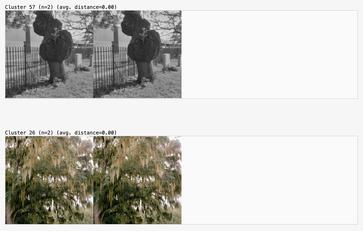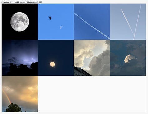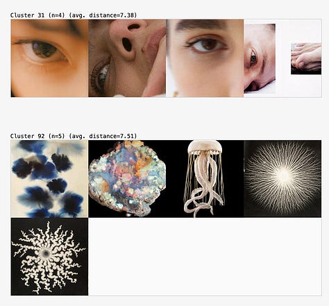 It’s clear that I prefer a curated selection of images over a collection sorted purely by aesthetic preference. This is likely because I know there’s a system behind the selection. In many cases, the similarity is obvious, yet the exceptions are particularly interesting because they raise questions: Did I miss something? What made the algorithm think this image belongs here? Was it misinterpreted?